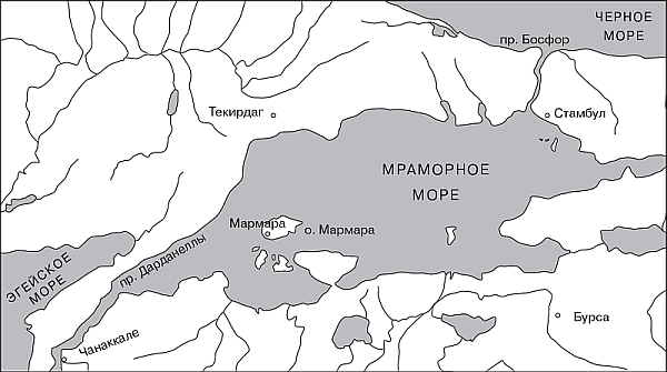 Мраморное море со знаменитыми проливами Дарданеллы и Босфор