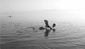 Итак, Мертвое море — самое соленое море в мире. Концентрация солей в его воде в 6–9 раз выше, чем в обычной океанской воде (соленость океанской воды составляет примерно 4–6 %). Это повышает плотность воды настолько, что человек плавает здесь, как пробка, не прилагая никаких усилий. По сути, утонуть здесь невозможно.