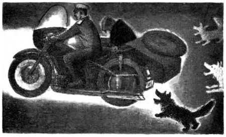 Милиционер включил мотор. И Гамбринус, забыв, что он пограничная собака, поймавшая нарушителя, бросился, как простой деревенский пёс, вдогонку, оглашая спящий посёлок отчаянным лаем, и все собаки на улице Зелёной и в окрестностях откликнулись дружным хором.