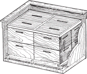 Размеры кожуха зависят от величины ульев и толщины засыпки, которую вы приготовили. Рекомендуем делать утеплительный слой: с боков улья – 15 см, снизу – 20 см, сверху – 25 см. Между стенками смежных ульев должен быть промежуток 8–10 см, который заполняют утеплительным материалом: мхом, кострой, стружками и т. д. Для удобства выхода пчел из фанеры или дощечек делают коридорчики шириной 10 см и высотой 1 см. Один конец коридорчика укрепляют в летке улья, другой помещают в вырезе стенки корпуса кожуха. С наступлением морозов кожух засыпают снегом.