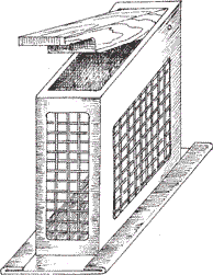 Ее размеры: 10 x 3,5 x 2,8 см. Клеточка состоит из двух камер – рабочей (для матки с рабочими пчелами) и кормовой, покрытой парафином. Между ними есть проход для пчел. В торце рабочей камеры есть отверстие для выхода матки в пчелиную семью. Оно должно закрываться пробкой или деревянной вставкой. В клеточку помещают 20 г сахарного теста, которое прикрывают пергаментной бумагой. Потом клеточку подносят к соту и ловят матку и рабочих пчел. Затем клеточку закрывают прозрачной пленкой и фанерной крышкой. Такие клеточки хранят в сухих вентилируемых местах при температуре +20… +22 °C и влажности воздуха 50 %.