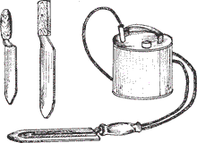 Паровой нож нагревают паром, который проходит через его полое лезвие. Он подсоединен резиновым шлангом к баку с водой, которую нагревают до кипения. Конденсат отводится в сторону также резиновой трубкой, надетой на угольник ножа.
