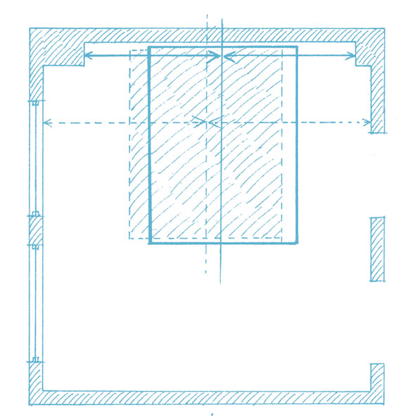 Стена между двумя дверьми (например, в ванную и туалет) прекрасно подходит для комода с зеркалом или туалетного столика, если перед ним есть как минимум 90 см свободного пространства. Ящики комода или столика должны выдвигаться без помех.