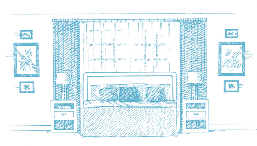 Замаскируйте окно гардинами от пола до потолка и смело ставьте кровать перед ним.