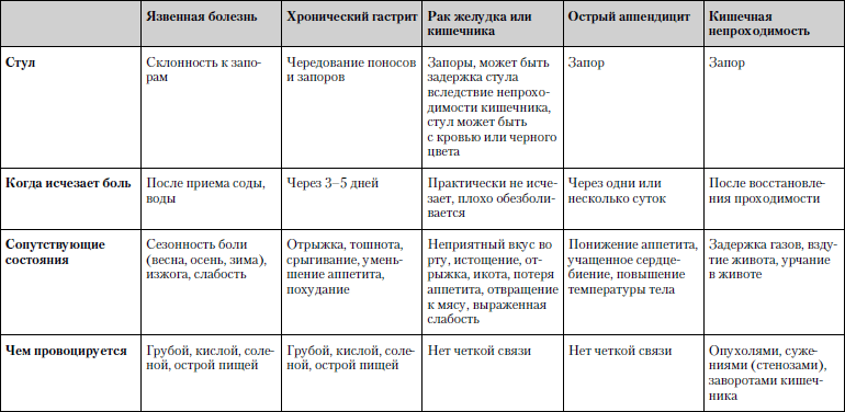 Сравнительная характеристика заболеваний, при которых боль в животе является одним из ведущих симптомов, представлена в табл. 1.1.