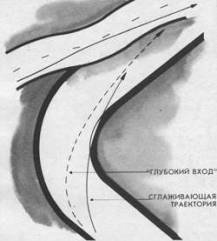Важным фактором безопасности является траектория движения, которая целиком зависит от водителя. Чтобы при одной и той же скорости действие центробежной силы было наименьшим, нужно как можно больше увеличить радиус движения. Такая траектория получила название сглаживающая.