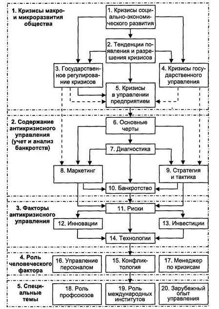 Игнорирование этой концепции может привести к ощутимым негативным последствиям, а ее понимание и реализация способствуют менее болезненному, "бархатному" прохождению кризисных ситуаций. Концепция антикризисного управления, основанная на учете и анализе банкротств, состоит из пяти блоков (рисунок 1.2).