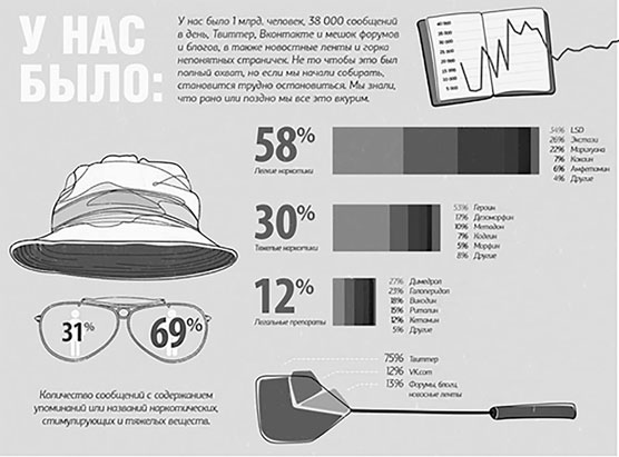 Завершая тему с мониторингом наркотиков, приведем инфографику по результатам одного из подобных проектов.