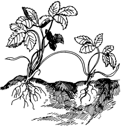 Размножение усами (рис. 29). Стелющиеся побеги, в узлах которых формируются розетки листьев и корни, называются усами. Они типичны для садовой земляники и образуются в период цветения растений. Но максимум роста наблюдается после уборки урожая.