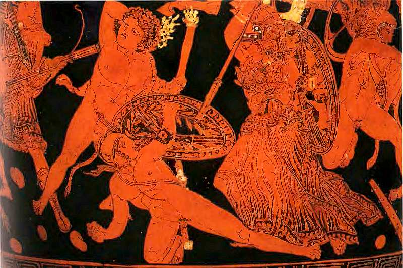 Едва олимпийским богам удается справиться с предшественниками, начинается новая битва, на этот раз против гигантов. Рожденные из крови оскопленного Урана, косматые исполины, ниже пояса напоминавшие драконов, появляются из-под земли. Чтобы добраться до Олимпа, они нагромождают окрестные горы друг на друга. Но с помощью Геракла боги одерживают победу.