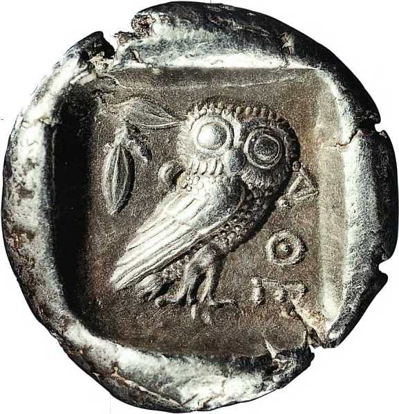 На реверсе афинских монет была отчеканена сова — символ богини Афины, покровительницы города. На реверсе современных греческих монет достоинством в 1 евро присутствует тот же символ.