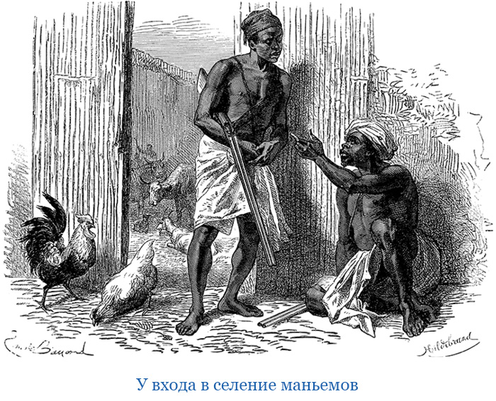 Когда мы остановились на ночевку и вечерние сумерки быстро сгустились, на реке показался челнок от Угарруэ и в нем три связанных занзибарца. На мой вопрос, что это означает, мне ответили, что эти занзибарцы убежали от меня, а Угарруэ поймал их вскоре после своего возвращения в ставку. Они бежали, конечно, с ружьями, а кисеты их доказывали, что они умудрились по дороге накрасть достаточное количество патронов. Я отблагодарил Угарруэ, послав ему револьвер и 200 патронов.