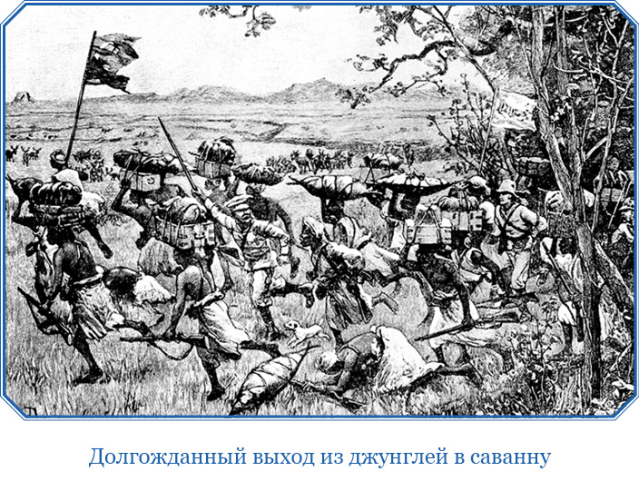 Так вот, наконец, долгожданный выход из мрака к свету! Я назвал Пизгой высокую вершину в конце лесистого хребта, на склоне которого мы стояли, возвышавшуюся в 3 км к востоку от нас на 1 500 м над уровнем моря; Пизгой потому, что после 156 дней сумрака в тени первобытных лесов мы впервые отсюда увидели желанные пастбища Экватории.