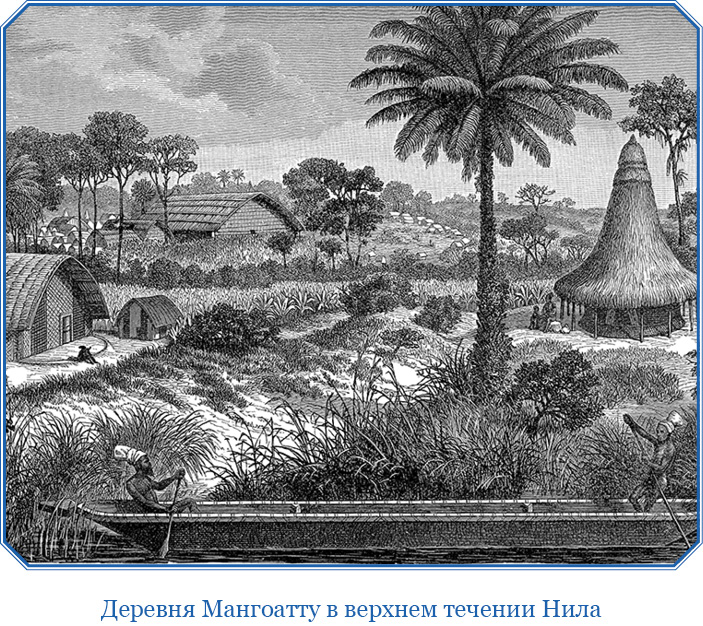 Имея в виду ничем не раздражать туземцев, мы выбрали дорогу на юго-восток, огибавшую селения. Мы пробирались между плантациями с таким расчетом, чтобы неприятелю негде было устроить против нас засаду. В половине двенадцатого мы достигли восточного края селений и остановились для полуденного отдыха под тенью дерева, ветви которого качались и шелестели от дуновения свежего ветра с Ньянцы.
