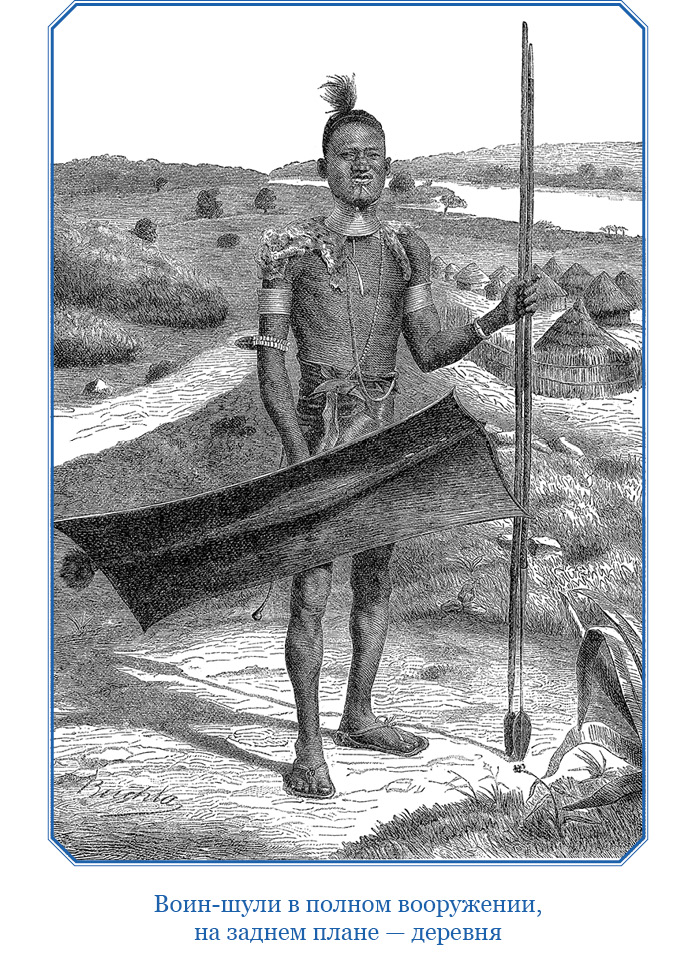 Как только мы вступили в эту цветущую долину, над головами нашими раздались воинственные возгласы, заставившие нас поднять головы. Это была толпа воинов человек в триста, со щитами, копьями и луками; они потрясали своим блестящим оружием, угрожали и очень сердито кричали что-то на непонятном языке. В сильном возбуждении они начали было спускаться к нам с крутизны, но передумали, вернулись на вершину и пошли вдоль гребня горы, все время вскрикивая и угрожая.