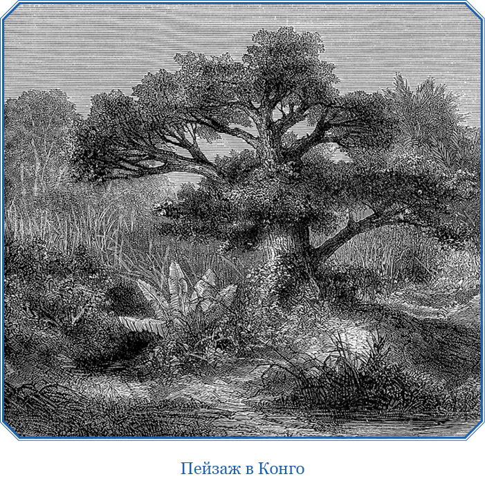Ныне мы преследуем цель в высшей степени важную. Думая о будущем, мы обращаем мысленные взоры к отдаленным портам на Ниле и на Альберта-Ньянце, где люди тревожно всматриваются во все пункты горизонта, ожидая обещанной им помощи. Гонцы из Занзибара, конечно, оповестили уже их о нашем прибытии. Но между ними и нами простирается громадная страна, которую и наилучшие географические карты обозначают лишь пустым местом. Глядя на эти темные леса (начиная от Болобо, громадные деревья тянутся непрерывной стеной, за исключением только тех мест, где в могучую реку вливаются ее притоки), каждый из нас думает свои собственные думы.