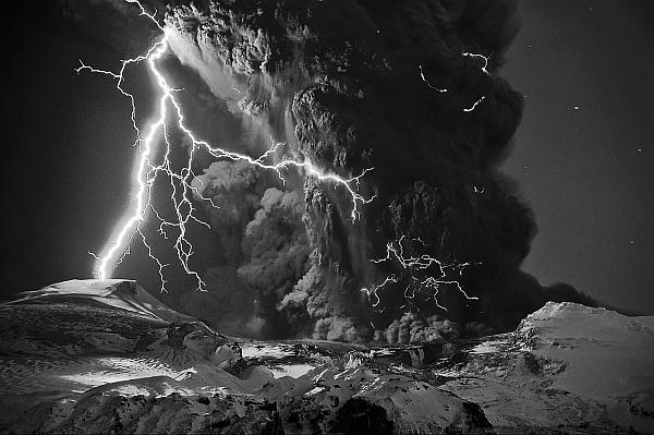 Молния пронзает клубы вулканического пепла над исландским вулканом Эйяфьятлайокудль 17 апреля 2010 года. Над всей земной поверхностью молния в среднем ударяет около ста раз в секунду – 8 640 000 раз в день (Photo by Sigurdur Stefnisson)