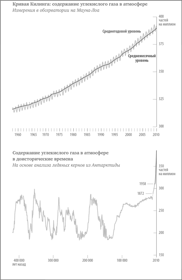 Росли опасения, что ледники могут вернуться – опасения, которые подтолкнули к исследованиям Луи Агассиса и других ученых столетием ранее. В начале 1970-х гг. ЦРУ занималось изучением геополитических последствий глобального похолодания, в том числе «массовой гибели людей и социальных потрясений», которые оно вызовет. В 1972 г. журнал Science обнародовал мнение специалистов по изучению Земли, которые на конференции в Университете Брауна сообщили, что «нынешнее похолодание особенно показательно» и что «следует ожидать глобального похолодания и связанных с ним быстрых изменений в окружающей среде, существенно превосходящих колебания, с которыми человек сталкивался в прошлом». Примерно в то же время ряд ученых, которые проводили анализ климата по поручению министерства обороны, написали президенту Никсону, что правительству необходимо исследовать угрозу наступления нового ледникового периода. Правление Национального научного фонда США несколькими годами позже сообщило, что в последние два-три десятилетия наблюдается тенденция к снижению температур. Как видно на страницах Science, эта точка зрения была не единственной. В 1975 г. один ученый раскритиковал «самоуспокоенность» тех, кто сосредоточился на снижении температур «в течение последних десятилетий» и «не принимает во внимание возможность потепления из-за роста концентрации углекислого газа в атмосфере в результате увеличения масштабов сжигания химического топлива»21.