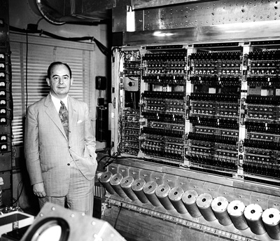 Джон фон Нейман у вычислительной машины, созданной им в начале 1950-х гг. Один из величайших гениев XX в., он внес огромный вклад в развитие математики, физики и экономики. Его называют отцом вычислительной машины, с помощью которой он моделировал ядерные реакции и погоду