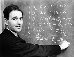 Чарльз Дэвид Килинг на вершине вулкана Мауна-Лоа на Гавайских островах, где он отслеживал содержание углекислого газа в атмосфере. Он хотел «измерять уровень углекислого газа, измерять его всеми возможными способами». Его «кривая Килинга» говорила об увеличении концентрации углекислого газа в атмосфере