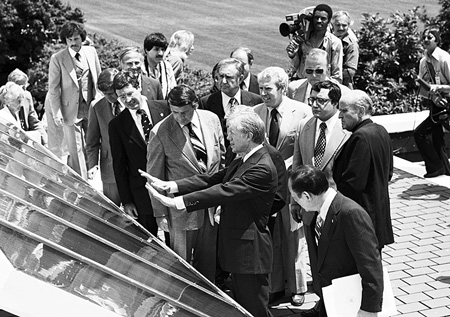 Джимми Картер, первый президент, поддерживавший возобновляемые источники энергии, в июне 1979 г. представил общественности солнечный водонагреватель на крыше Белого дома. Он, как выразился Картер, «станет частицей одного из самых больших и увлекательных предприятий, которые когда-либо осуществлялись американским народом», или «музейным экспонатом». В конечном итоге этот солнечный водонагреватель стал музейным экспонатом