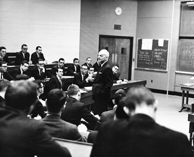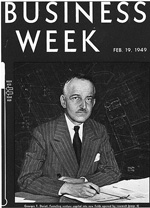 Генерал Жорж Дорио на обложке журнала Business Week, вышедшего в свет в 1949 г. (фото внизу), и на занятии в Гарвардской школе бизнеса, где он читал свой знаменитый курс «Производство» (фото сверху). Во время Второй мировой войны он контролировал разработку экспериментальной продукции для американской армии, а после войны создал индустрию венчурного капитала