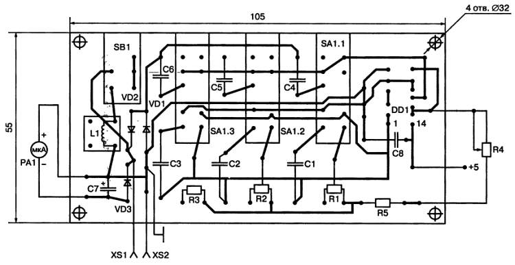 Рис. 3. Печатная плата омметра с линейной шкалой