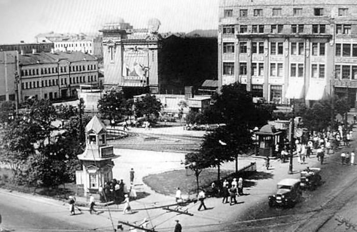 Триумфальная площадь тех лет. Здание в середине – Дом Ханжонкова