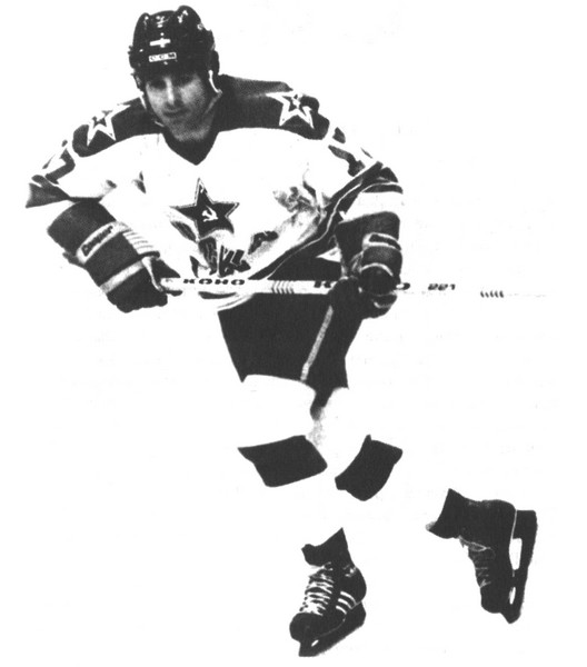 «Вот Смолин — дело иное. Саша запросто обводил пятерку соперников! Проезжал за ворота и снова обводил пятерых! С ним играть-то никто не хотел, потому что резонно возникал вопрос, зачем же здесь ты? Приставляли к нему двух ребят послабее. Саша исполнял буквально цирковые трюки. Сближался, к примеру, с защитником и в последний момент перебрасывал шайбу через него, а тот еле успевал голову пригнуть, чтобы шайба в лицо не угодила. И Саша объезжал его на одном коньке. Покидая хоккей, Александр Альметов вручил Смолину свой свитер с номером девять…