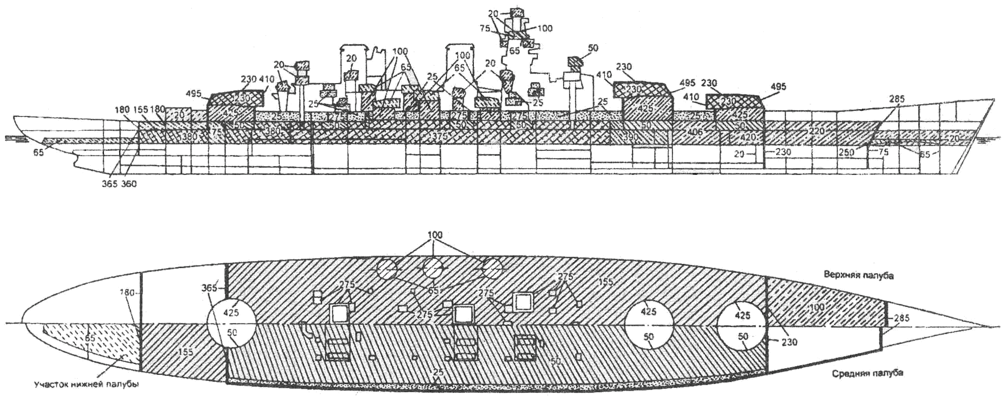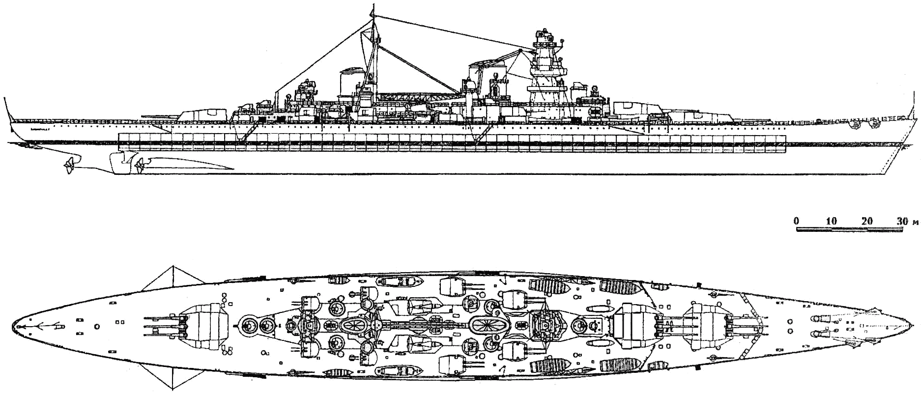 То ли в начальный, то ли в промежуточный период строительства новых кораблей обсуждался вопрос о вооружении их тремя двухорудийными 380-миллиметровыми установками германского производства, идентичными установкам достраивающихся тогда «Бисмарка» и «Тирпица». Идея была вполне реальной – в тот момент советские кораблестроители успешно сотрудничали с Германией, отчаянно нуждавшейся в деньгах и сырье, как раз тогда у немцев очень лихо был куплен недостроенный тяжелый крейсер «Лютцов», переименованный в «Петропавловск». Увы, от реализации этого проекта пришлось отказаться – помимо того, что эти установки перегружали корабли и требовали слишком больших изменений в уже достаточно продвинувшейся конструкции, немцы просто не успевали с поставками орудий в сроки, тормозя строительство. А жаль – 380-миллиметровые орудия главного калибра сразу поставили бы «Кронштадт» и «Севастополь» даже не в один ряд, а несколько выше британских линейных крейсеров. Тем не менее и с 305-мм артиллерией они настолько разительно отличались от обычных тяжелых крейсеров (включая тот же «Петропавловск»), что их еще на стадии постройки стали называть линейными крейсерами. Этому способствовало и то, что заложенные в 1941 году и только-только вступающие в строй американские корабли типа «Аляска», очень похожие на «Кронштадт» по своим характеристикам, тоже изначально классифицировались как «Battlecruisers» – линейные крейсера.