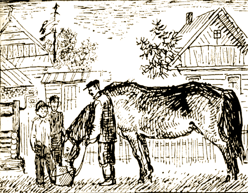 Гриша считался в селе первым бойцом, и с ним никто не хотел связываться. Только Ванята не признавал Гришиной власти, сам при случае задирал приятеля и бился до последних сил. Уже лежит он пластом на земле, уже просить бы ему по всем правилам пощады, но нет, не сдается. Вертит головой, пинает противника ногами, норовит выскользнуть из цепких горячих объятий.
