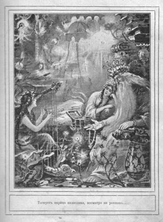 Целые полчища рыбок даны ей в утеху, целые сотни зеленооких прислужниц-русалок окружают ее. Пляшут, тешат ее играми, забавляют всячески.