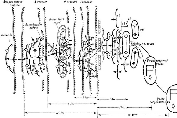 12. В оборонительной операции фронта или армии танковые корпуса самостоятельных оборонительных участков не получают и используются как мощное средство контрудара из глубины и располагаются на стыках армий, вне воздействия артиллерийского огня противника (20–25 км).
