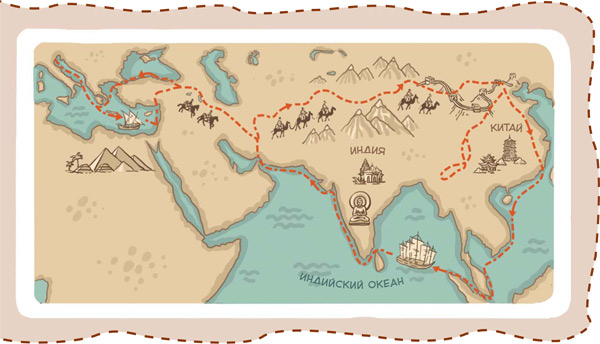– По возвращении домой он написал книгу о своём путешествии. И так подробно описал Великий шёлковый путь, что купцы из Европы смогли добраться по нему до Китая и Индии.