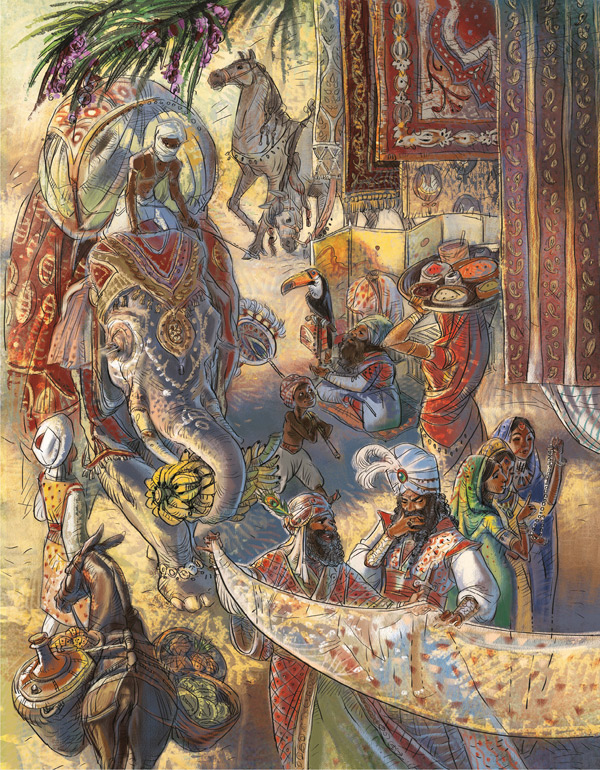 – В Индии европейцам всё кажется необыкновенным. Там круглый год тепло, растут невиданные цветы и фрукты! О несметных богатствах Индии в те времена ходили легенды. Оттуда в Европу везли золото, драгоценные камни и пряности.