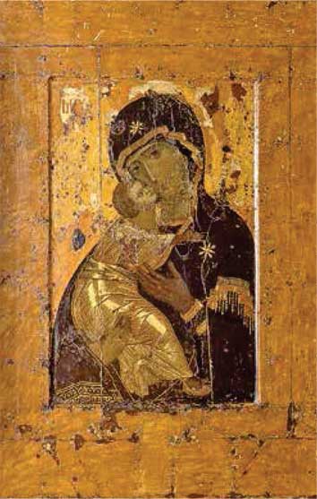 Князь Андрей Боголюбский увозит икону Богоматери из Вышгорода. Миниатюра Лицевого летописного свода. XVI в.