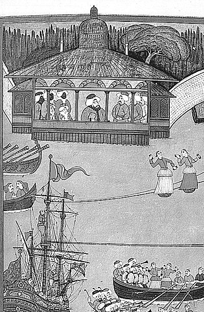 Из пажа Ибрагим стал главным сокольничим. Что это такое, объяснять не требуется. Последними двумя «покоями» личных слуг султана были черные и белые евнухи. Черные евнухи, числом несколько сотен, охраняли султанский гарем и поэтому назывались ага гарема [3] . Их начальник назывался кызлар-ага, или смотритель за наложницами, и его должность под разумевала и некоторые другие обязанности, помимо связанных с «девами». Также во дворце жило некоторое количество белых евнухов, начальник которых назывался капу-ага, или начальник ворот. После него главным должностным лицом был хассодабаши. Турецкие историки называют Ибрагима в то время, когда его впервые назначили визирем, хассодабаши. Кантемир называет его «капитаном внутреннего дворца», это очень хороший перевод турецкого термина. Как мы уже сказали, этот чиновник был вторым по старшинству среди белых евнухов. Ему была доверена одна из трех султанских печатей в перстне, которыми помечались ценные вещи, хранившиеся в комнатах султана. Например, фиалы с водой, которую благословляли погружением края мантии Пророка и по приказу султана раздавали знати 15-го числа месяца Рамадана.