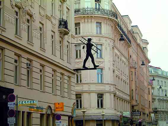 Вена шутит. Фигура трубочиста на здании свидетельствует о том, что в нем и поныне топят дровяные печи
