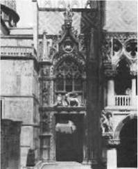 Над входом помещена скульптурная группа работы Антонио Бреньо: перед крылатым львом на коленях стоит дож Франческо Фоскари (1423–1457); это был крупный государственный деятель, отличавшийся умом, энергией и смелостью.