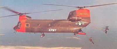 С появлением вертолетов СН-47 в армии начались отработка тактики их боевого применения и определение состава экипажа. Во Вьетнаме в состав экипажа входили командир, второй пилот, бортинженер (который мог выполнять роль стрелка) и стрелок. Часто солдаты снимали окна в хвостовой части кабины (а иногда и другие