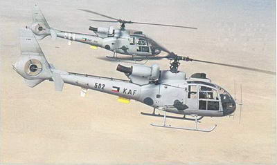 В1974 г. Кувейт получил первую «Газель». Всего было поставлено 24, из которых сейчас осталось 16. Эти вертолеты входят в состав 33-й эскадрильи, находящейся на авиабазе а Али-Салим-Сабахе