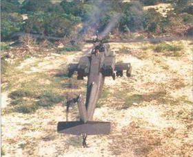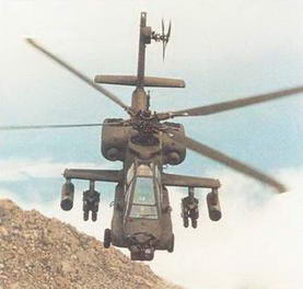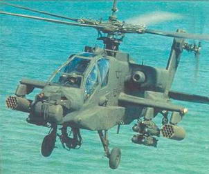В атаку вертолет «Апач» выходит, когда он находится вне досягаемости огня противника. Вертолет может нести различные типы высокоточного управляемого оружия, но при поражении слабо защищенных целей высокую эффективность доказали неуправляемые PC. которые могут снаряжаться различными боевыми частями (фугасными, осколочными, зажигательными и др.)