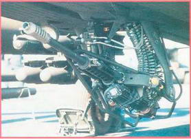 30-мм пушка М230Е1«Чейн Ган» (Chain Gun) является уникальным оружием. Ее разработчик – фирма «Хьюз». Название пушке дал механизм подачи снарядов, состоящий из беззвенной металлической цепи (цепь – по- английски «chain»). В снарядном ящике обычно содержится почти 1100 снарядов, еще 100 находятся непосредственно в ленте. Пушка связана с нашлемным прицелом пилота IHADSS. Она может отклоняться по углу возвышения от +11° до – 60° и разворачиваться по азимуту на угол ±100°.