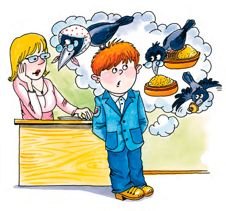 – Неправильно подсказывать – подло! Это гораздо хуже, чем не выучить урок! – возмутилась учительница. – Надо будет поговорить с твоей мамой. А сейчас назови-ка птиц – родственников вороны.