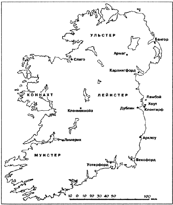 Рис. 14. Карта Ирландии, демонстрирующая основные места, связанные с эпохой викингов