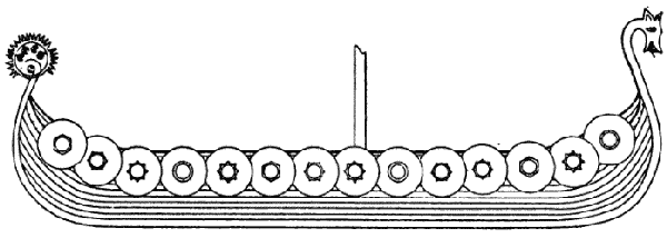 Совершенно очевидно, что здесь мы имеем дело с погребением в ладье скандинавского типа (корабль был построен из дуба, но его мачта и весла — из сосны, которая в настоящее время в этой части Бретани не растет). Подобный тип захоронения был общепринятым для Норвегии и в средней Швеции, но редким для поселений викингов на Западе. Хотя от корабля сохранилась незначительная часть (возможно, он составлял 40 футов в длину), чтобы представить его строение, одна деталь — круглый обод диаметром в 2 фута с подвижными листообразными украшениями по кругу внешней стороны и тремя кольцами внутри — позволяет восполнить лакуну в наших знаниях о кораблестроении викингов. Обод мог и не иметь практического назначения и, очевидно, должен был быть виден с обеих сторон ладьи; однако его нельзя было закрепить где-либо еще, так как для этого не было необходимых отверстий. Вероятно, обод представлял собою "хвост дракона", уравновешивающего носовое украшение, о котором упоминают саги. В настоящее время известно, что именно дракон