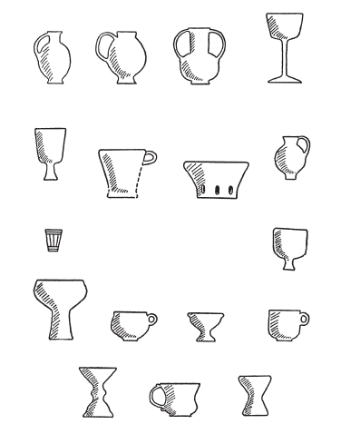 Рис. 30. Формы византийской керамики (согласно изображениям на фресках, гора Афон)