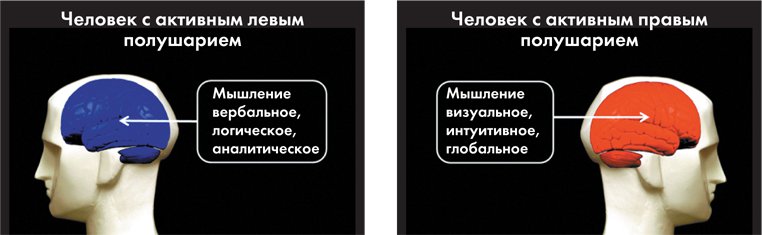 Это объясняется особенностями функционирования высшей нервной деятельности человека. Как известно, головной мозг человека состоит из двух полушарий: левого и правого. Левое полушарие обрабатывает информацию логично и последовательно. Оно оперирует словами. Оно трудится линейно и методично.
