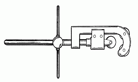 Этот инструмент (рис. 12) используют при резке трубы. Труборез позволяет получить наиболее чистую линию разреза, строго перпендикулярную к ее стенкам.