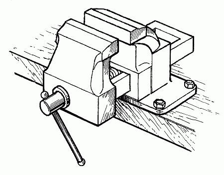 Это зажимное приспособление (рис. 9), в отличие от тисков, применяют для зажима плоских деталей.